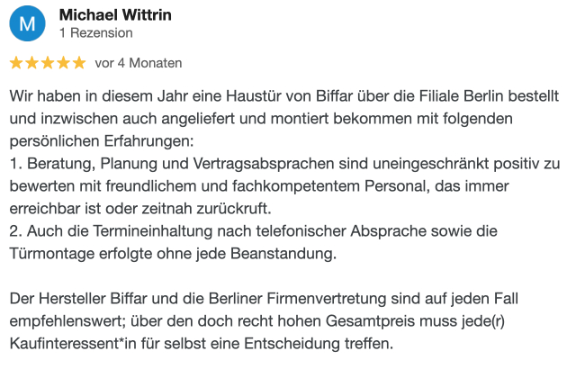 Begeisterte Kunden berichten über Biffar