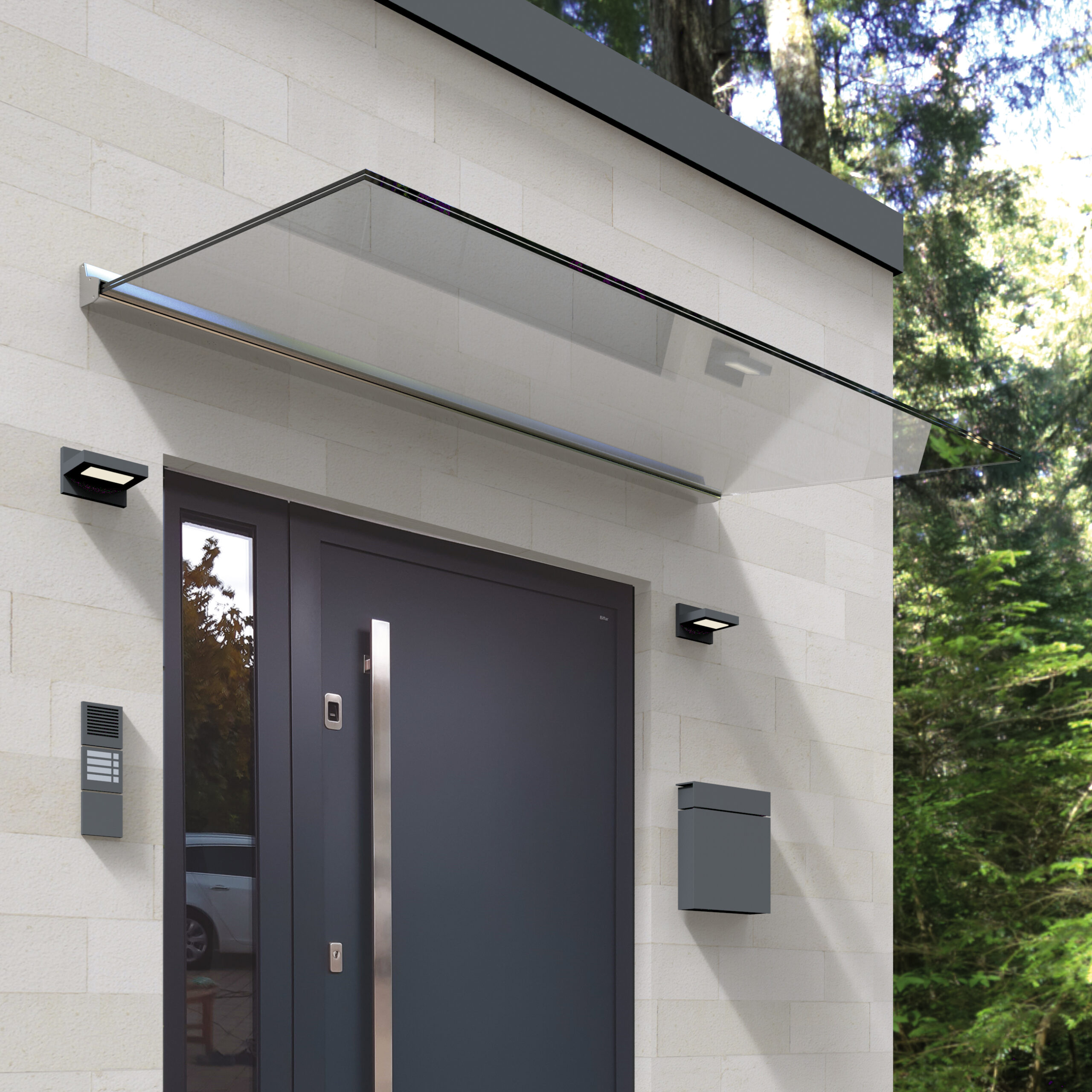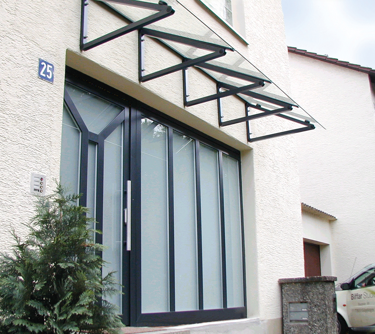 Biffar Vordächer schützen zuverlässig vor Regen, Schnee und Sonne, halten den Eingangsbereich sauber und verleihen Ihrem Haus einen individuellen architektonischen Akzent.